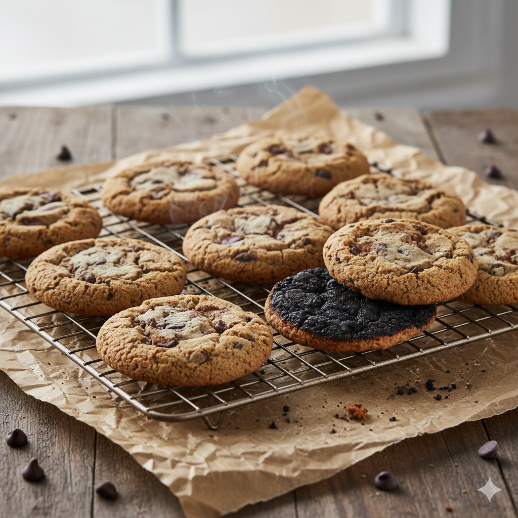 Your cookies are dark and bitter on the bottoms because the pan was too hot or too dark. A quick fix can salvage them.