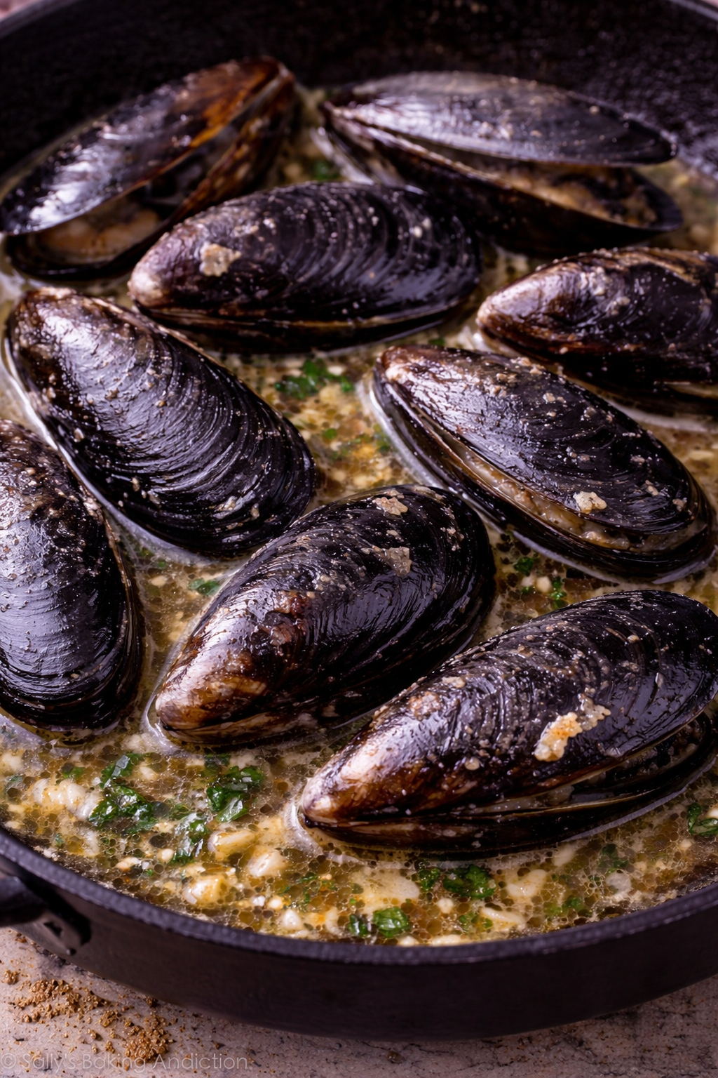 Mussels open when the adductor muscle relaxes with heat. A bit more steam and movement helps even out the heat, but closed shells after cooking usually indicate a dead mussel and should be discarded for safety.